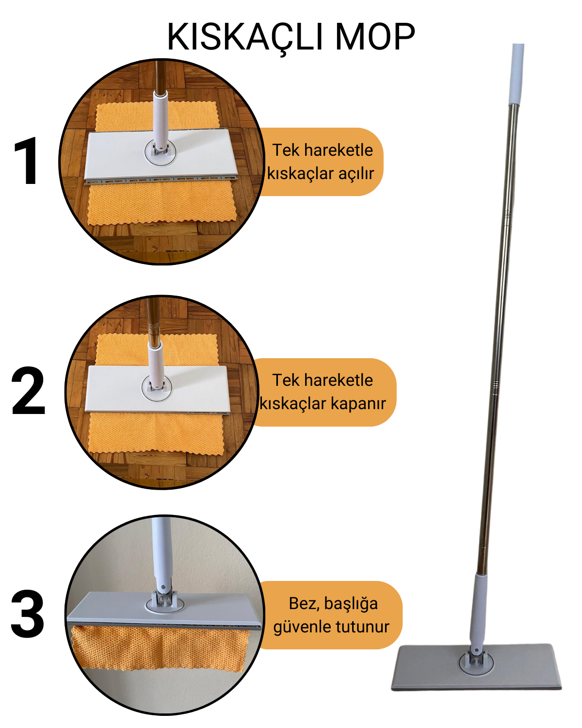 Kıskaçlı Mop - Pratik ve Hijyenik - Yüzey Temizleme Mendili veya Temizlik Bezi İle Kullanılabilir
